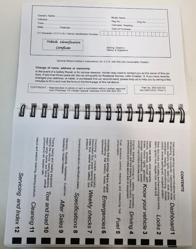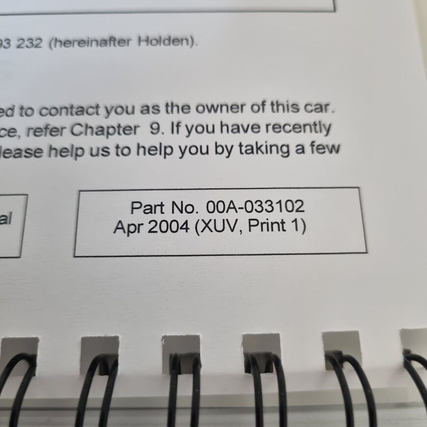 - NOS HSV VY Avalanche XUV Owners Handbook Genuine 00A-033102 Apr 2004 Print 1