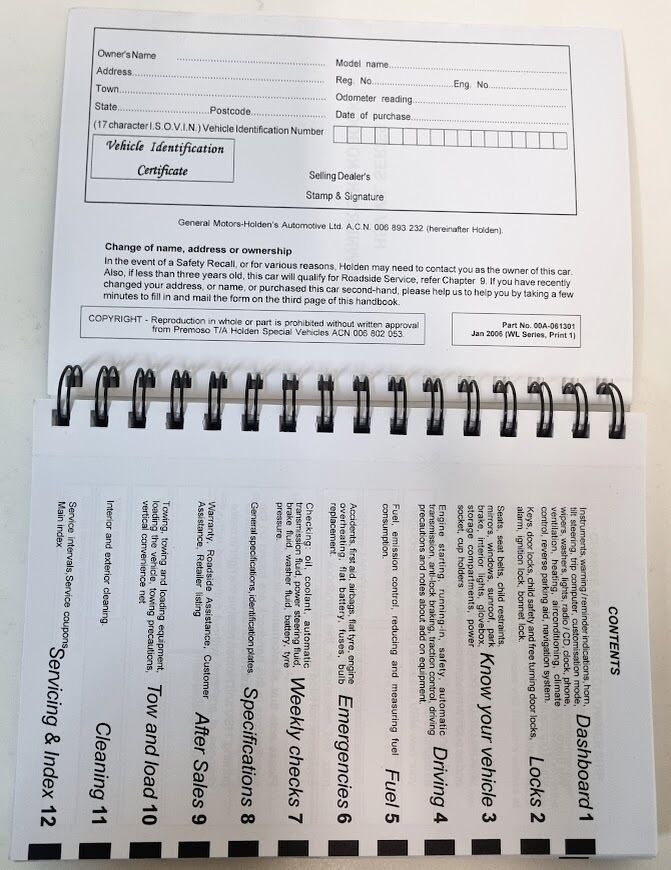 - NOS HSV WL Grange Owners Handbook Genuine 00A-061301 Jan 2006 Print 1