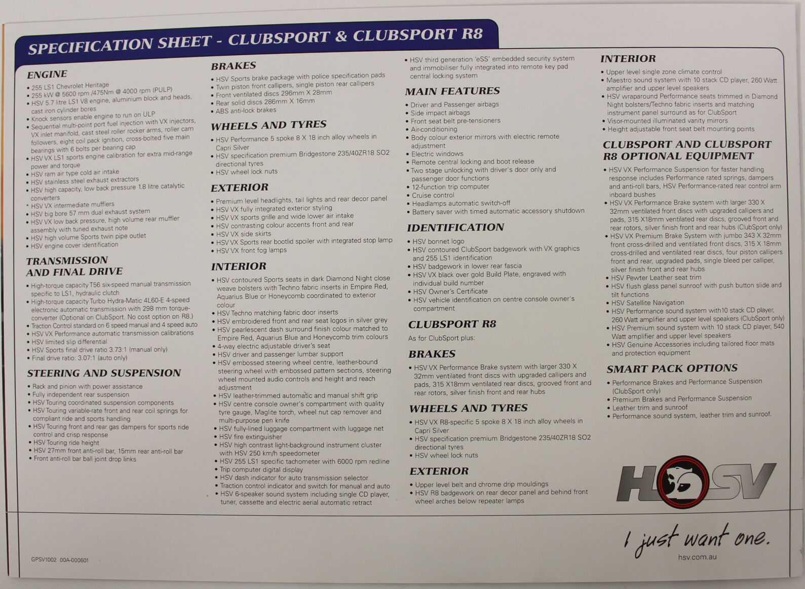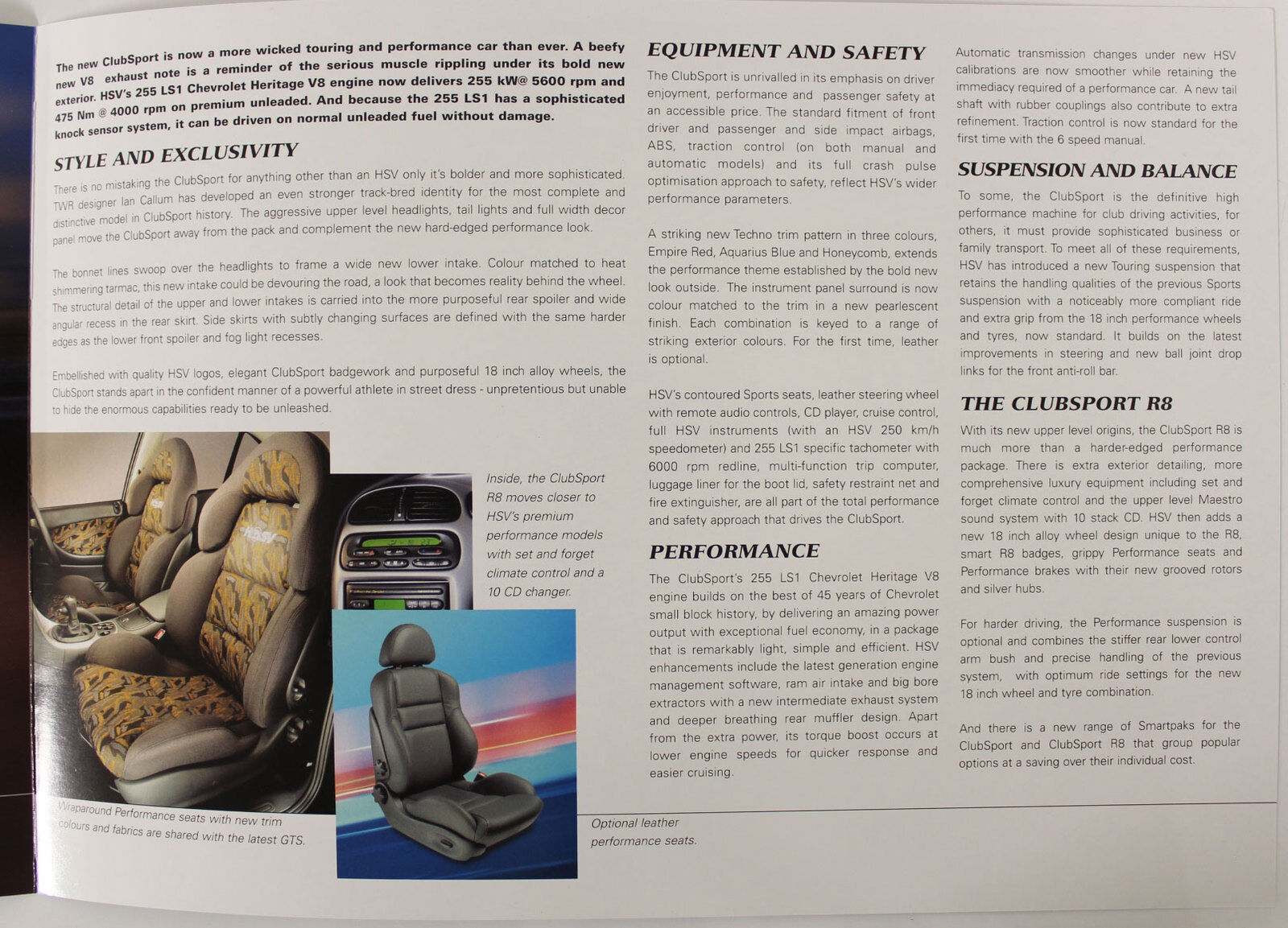 - New Original HSV VX Clubsport & R8 Brochure