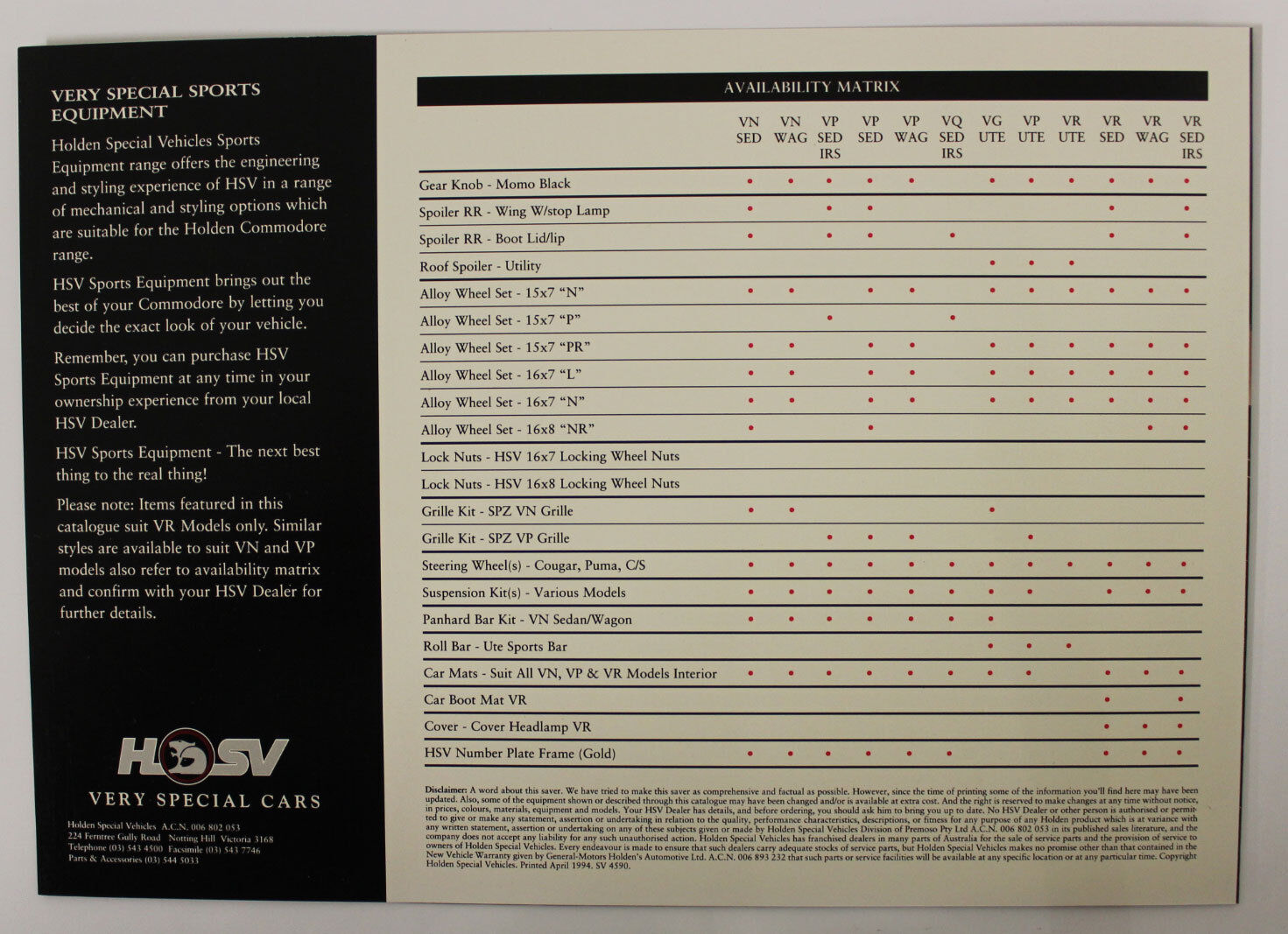 - New Original VR HSV Sports Equipment Brochure