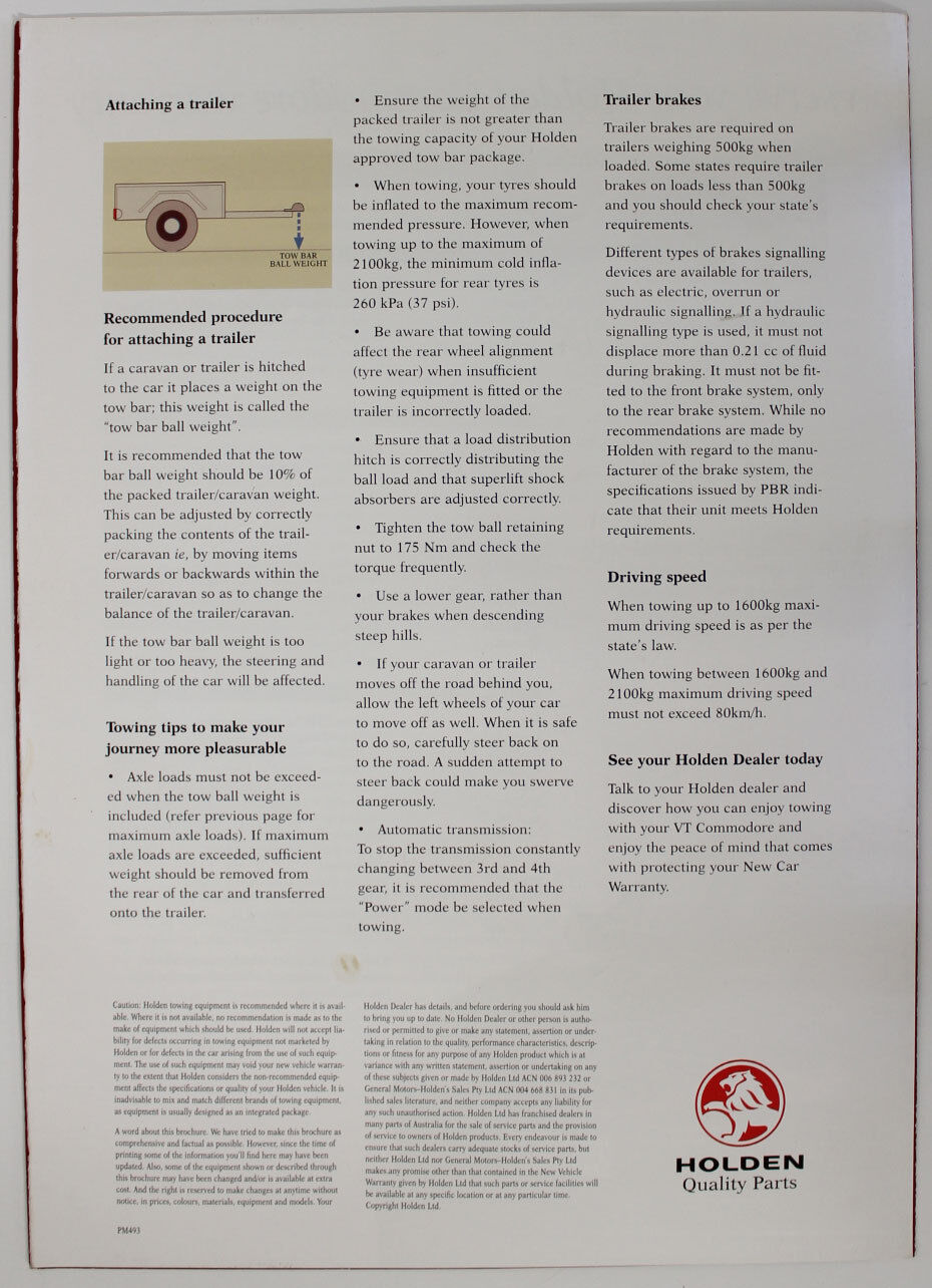- Product: New Original Holden Towing System Sales Brochure Commodore VT