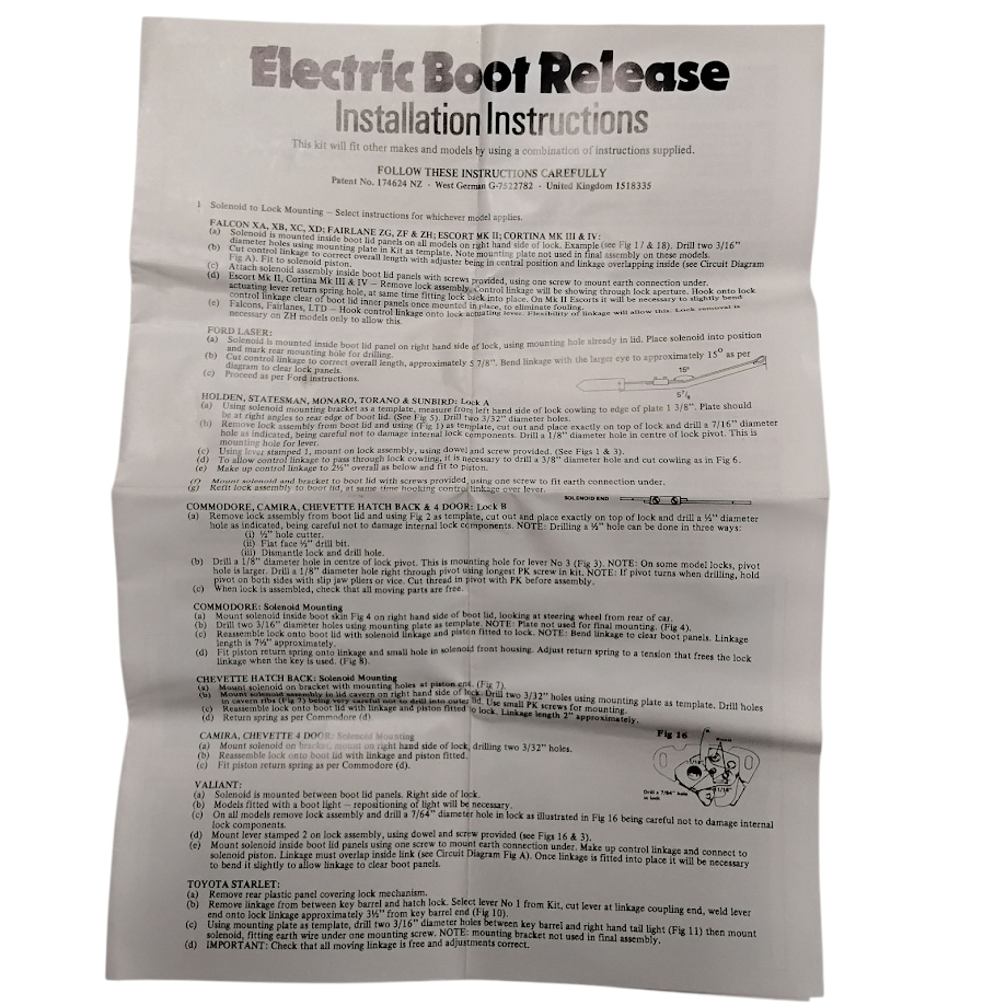 - Product: NOS Holden Torana Commodore Monaro Electric Boot Release Kit U10513 SLR SLE GTS